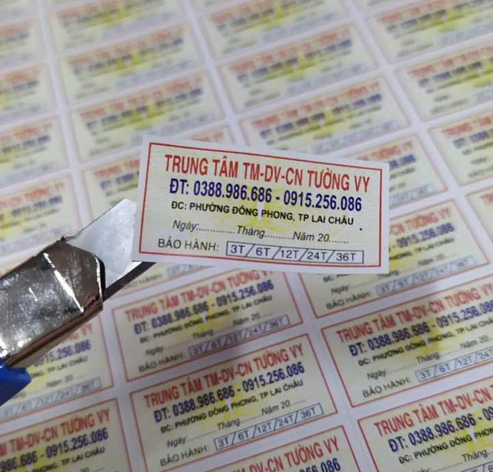 Ngày nay, in tem vỡ (hay còn gọi là tem bảo hành ) đóng vai trò rất quan trọng đối với lĩnh vực kinh doanh sản phẩm. Làm tem bảo hành có tác dụng rất lớn trong việc mang lại lòng tin của khách hàng đối với các sản phẩm của nhiều doanh nghiệp. in tem vỡ - in tem bảo hành tại In Trần Phát chất lượng, chuyên nghiệp, giá xưởng đảm bảo quyền lợi cho khách hàng.